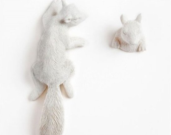 掛鉤的設(shè)計已經(jīng)直接擬人化,動物造型的掛鉤,用頭部和脖子作為掛鉤的實際功能點,一只松鼠正在墻上攀爬,而另一只宛如正從墻壁中探出腦袋,有趣極了。