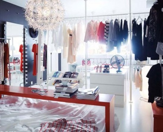 衣柜看似儲(chǔ)物能力強(qiáng)大,但是笨重的造型對(duì)于同居房來(lái)說(shuō)并不實(shí)用。因此,采用靈活度較高的收納配件,將原本臥室里繁重的收納任務(wù)切割成若干塊才是上選。