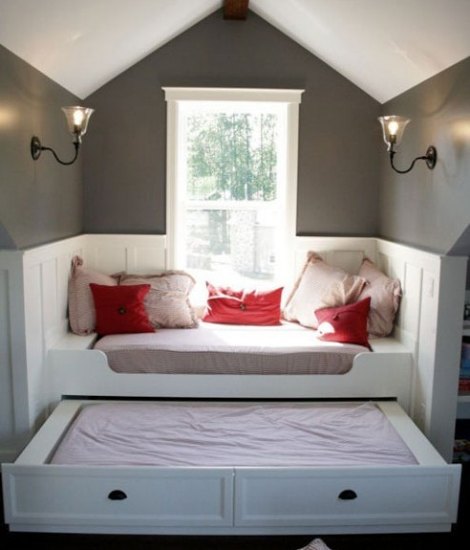 閣樓的飄窗角,被予以了最最舒適的改造,由軟坐墊與多個(gè)靠包打造的沙發(fā)座,靜靜享受著陽(yáng)光帶來(lái)的美好,而沙發(fā)坐底層的抽屜設(shè)計(jì),并沒(méi)有用作收納只用,而是另增設(shè)了一個(gè)沙發(fā)坐,大大擴(kuò)充了飄窗休息區(qū)的面積。