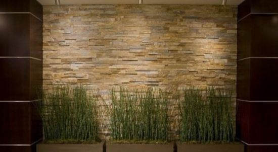 兩面凸形墻之間留下了一個(gè)較為窄小的凹形空間,為其按上合適的矩形盆栽,選用草叢形態(tài)的盆景,其蓬勃向上的架勢(shì)能給家?guī)?lái)泯不滅的生命力。