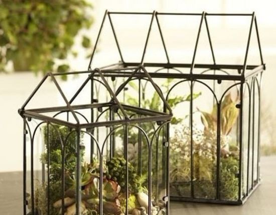 簡(jiǎn)單的盆栽已經(jīng)不能滿足追求家居時(shí)尚的我們,盆景也要?jiǎng)e出心裁,為玻璃盆栽的外邊裹上一層鐵藝屋形架,促成一款絕美的可移動(dòng)盆景,隨意地?cái)[放在想要的位置。