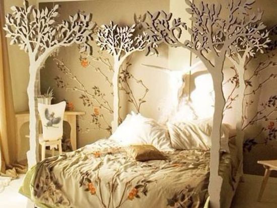 相對(duì)于DIY樹枝床架,這款樹形床架形態(tài)更為夸張,唯美。晚上若光上燈,在月光的細(xì)微照耀下,你能看見樹影,宛如臥躺在森林之中。