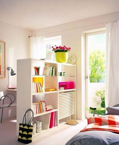 展示性書架是書架,也是軟隔斷,倚墻而立的書架,收納功能強(qiáng)大,打破了室內(nèi)白色的單調(diào)感,更有裝飾性。