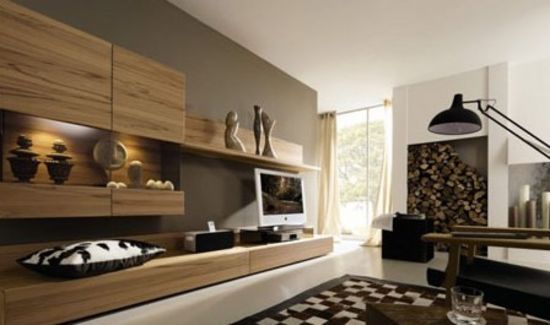 和諧的配色是這個(gè)客廳的優(yōu)點(diǎn),主要采用咖啡色與白色打造,一切以其相近色進(jìn)行融合。特別是電視背景墻單元,采用了咖啡木色,電視柜除了大容量的收納功能外,也給藝術(shù)裝飾品提供了很好的展示空間。