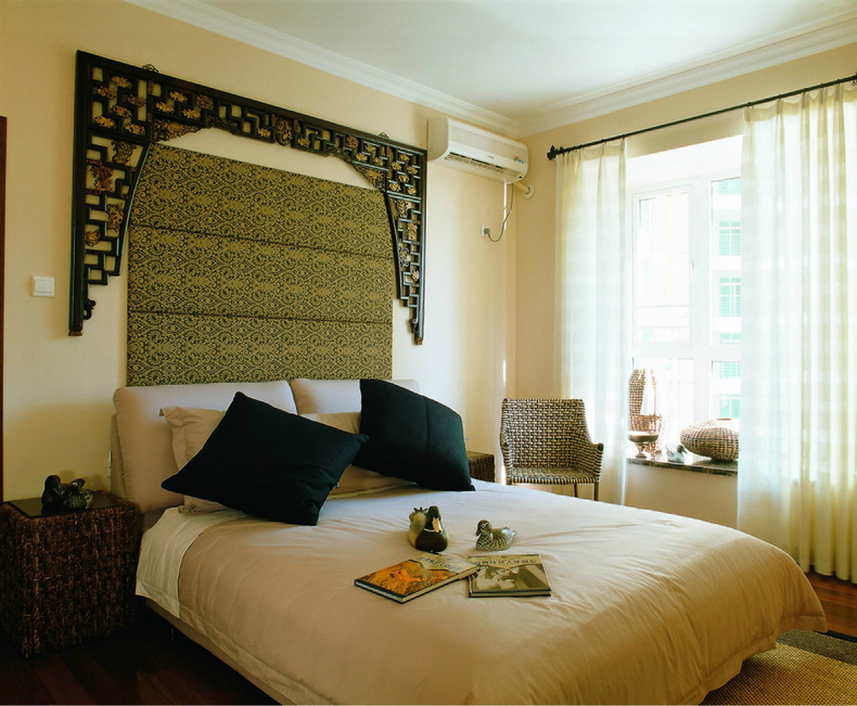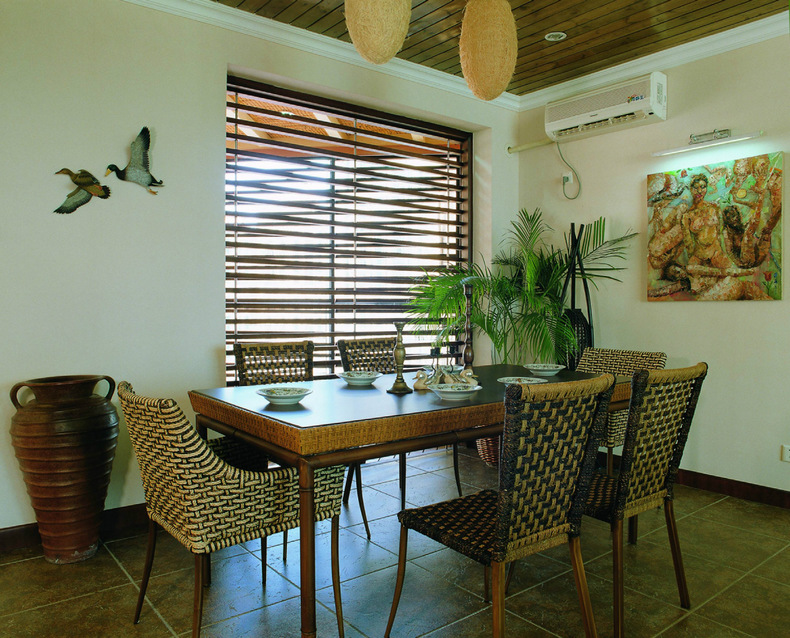 家具以藤編為主,素凈的色調(diào),中式風(fēng)格的軟裝飾,完全休閑的感覺。