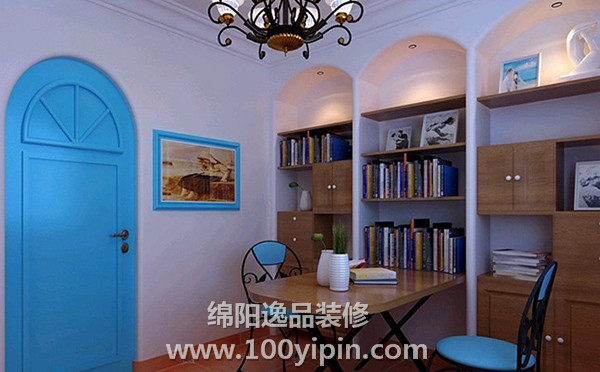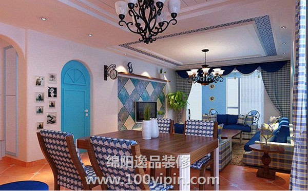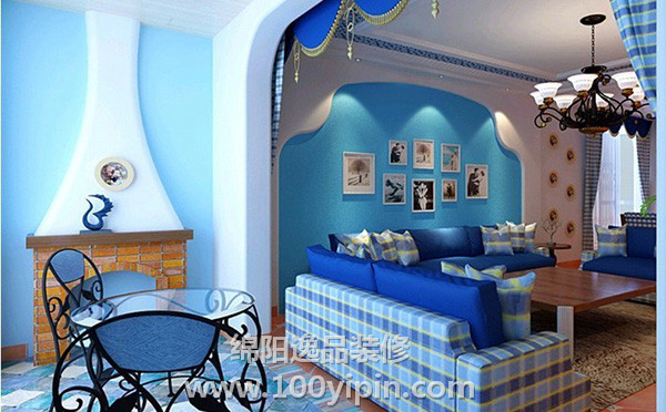 房間的整體色調就是藍白亮色,如同希臘靠海的建筑一般,很清新的趕腳。壁爐的設計,還有船舵的小裝飾,都比較能凸顯歐式風格。