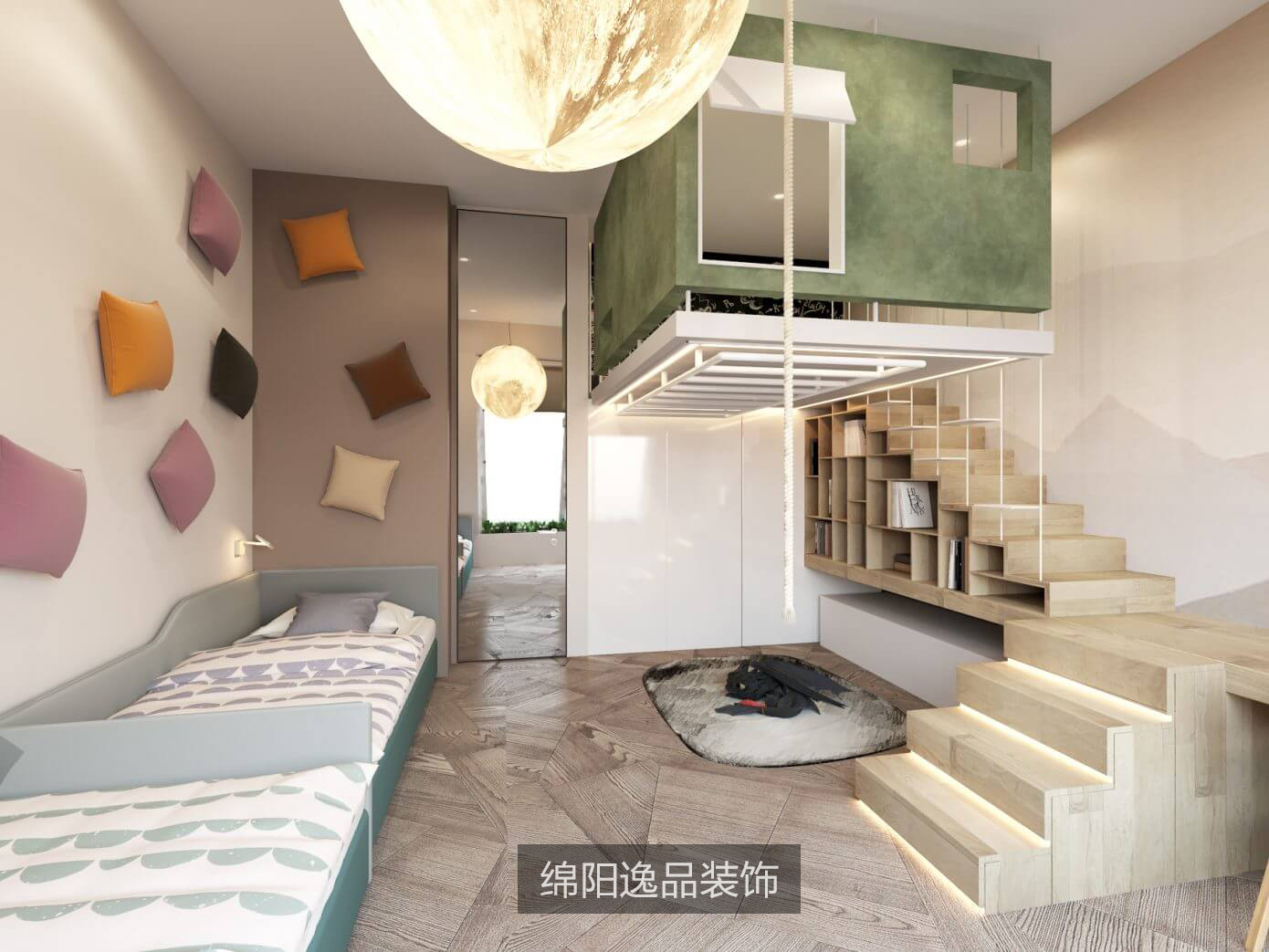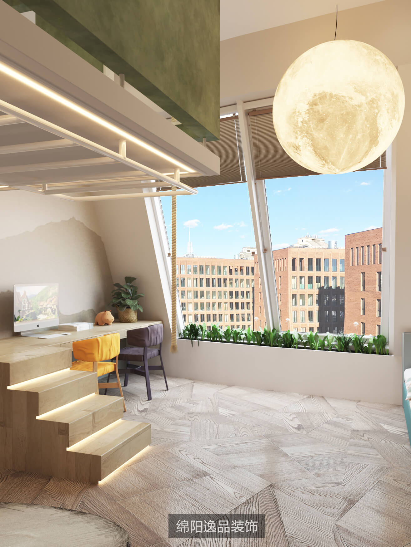通過整面的植物墻帶來自然與活力,讓屋主的每一天不論是外出工作或是夜晚歸家,都能感受到愜意與放松。閣樓獨(dú)有的協(xié)斜面玻璃窗將充分的陽光灑入室內(nèi),將薄墨色的沙發(fā)擺放在窗邊,窗外的美景映入眼簾,墻面上幾何圖案的裝飾品散發(fā)出微光,時(shí)尚且獨(dú)特,可旋轉(zhuǎn)的實(shí)木茶幾,符合人體工學(xué)的單人椅,讓這里顯得十分的質(zhì)感大氣