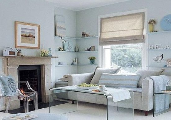 極簡設(shè)計的倒“U”字形玻璃茶幾和沙發(fā)邊柜既擁有實用功能,同時又不讓沙發(fā)區(qū)顯得擁擠。配套的透明材質(zhì)單椅也有同樣的效果。溫和的淡藍(lán)色墻面和淡雅的布藝沙發(fā)也是小客廳的好選擇。