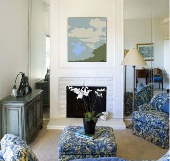 鏡子的作用不只是整理著裝容貌,也可以成為小戶型擴大空間的“魔法鏡”。大大的落地墻面鏡將客廳風景全部倒映,乍一看讓人以為那是真實的客廳空間。不過,客廳的軟裝需要整齊統一,這樣鏡子的那頭的風景才也會清晰通透。