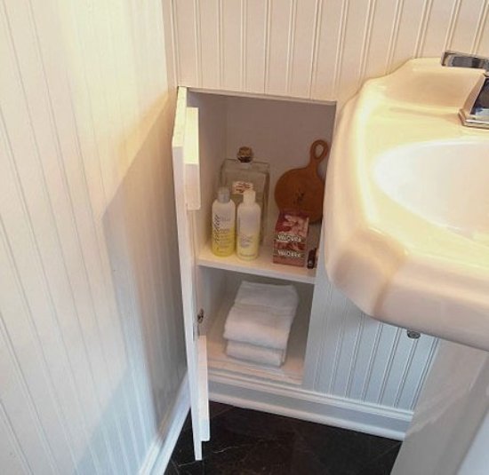 【衛(wèi)浴間小角落的底部墻壁,被悄悄設(shè)計(jì)成了一個(gè)小巧的收納柜】