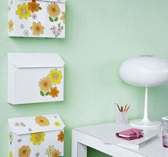 小空間里的墻面可是收納的一塊寶地,既能打造成收納區(qū),也可以成為很好的展示空間。三只由信箱改造而來的收納盒,可以根據(jù)家里的實際情況分類放置不同的物品,而外部的印花圖案則讓空間變得更加美觀和實用。