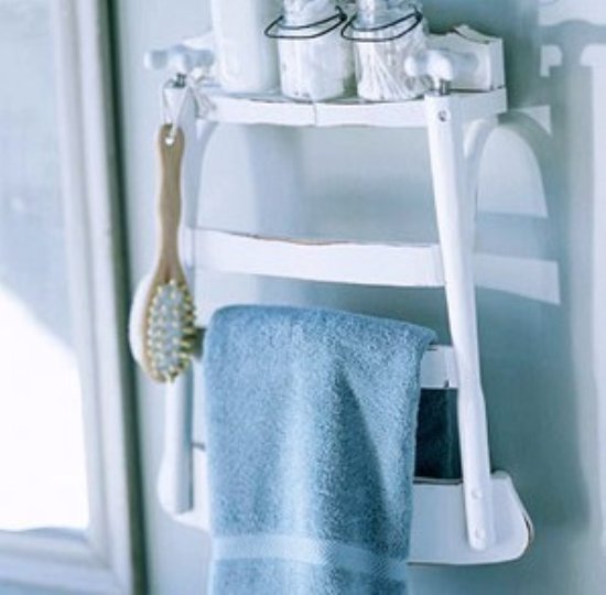 這個置物架的造型是不是很眼熟,卻一時又想不來用什么家具改造的?,F(xiàn)在揭曉答案,這其實(shí)是椅子的上半段。保留椅背和部分椅面,其余部分一并鋸下,之前留有的一點(diǎn)椅面在存放時提供了足夠的寬度。