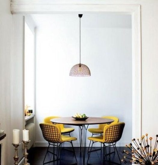 【四把明亮的黃色餐椅,把狹小的空間無限放大】