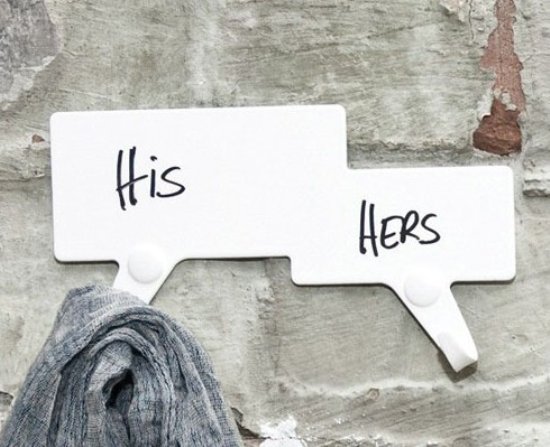 如今的85后小兩口之家,處處都綻放著有趣的創(chuàng)意,如這款將“他”與“她”明確標(biāo)注而出的簡(jiǎn)易創(chuàng)意掛鉤,將男女收納有趣分類(lèi),連收納的小件都貼上了情侶標(biāo)簽。