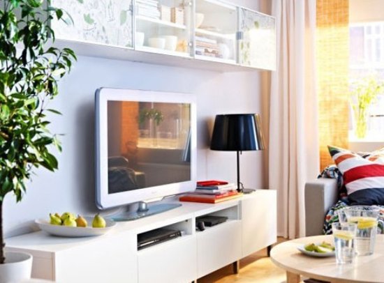 輕巧的電視柜設(shè)計(jì)將影音設(shè)備的存放點(diǎn)拓展到小空間中,和擱架進(jìn)行搭配上后增加了電視柜本身的實(shí)用功能。而多樣組合的電視柜讓單調(diào)的空間變成了豐富的背景墻。上方收納格與底部矮柜的巧妙結(jié)合,在視覺(jué)上具有平衡感,既實(shí)用又好看。