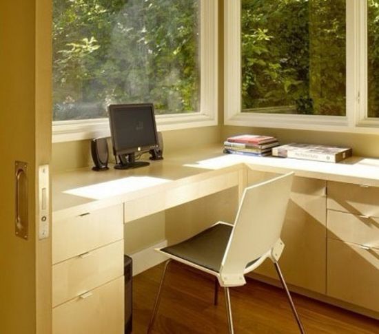 緊靠窗臺(tái)位置,放上不占空間較為窄長(zhǎng)的書桌,若是帶有轉(zhuǎn)角的窗體,轉(zhuǎn)角書桌是最好不過的選擇了。床邊擁有最好的采光和優(yōu)美的窗外風(fēng)光,是完美地工作學(xué)習(xí)角落腳地。