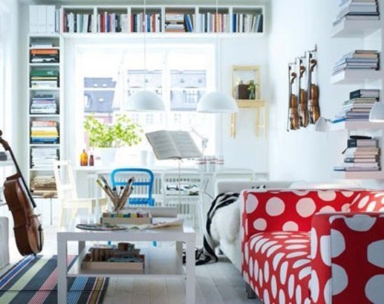 著客廳大窗戶的窗框,一個(gè)個(gè)實(shí)用的收納格順勢(shì)將其包圍起來(lái),再放置上簡(jiǎn)單的書桌和座椅,原本沒(méi)有多余作用的窗臺(tái)就這樣被改造成工作區(qū)。因?yàn)榭蛷d是小戶型家中占地面積最大的空間。