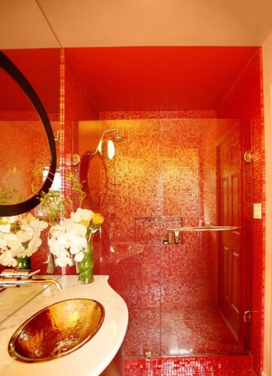 大紅色的馬賽克瓷磚最能營造出喜慶的感覺,整個(gè)淋浴間空間的墻面全用大紅色馬賽克鋪貼,雖然只用一種顏色,但通過反光,不會(huì)顯得單調(diào),小小衛(wèi)生間讓家永遠(yuǎn)帶著喜慶色彩。