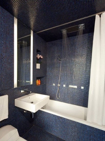 黑色與深藍(lán)色搭配的馬賽克瓷磚,總給人一種酷酷地感覺(jué),雖然衛(wèi)生間空間極小,卻極具品質(zhì)感,一切以節(jié)約空間的手法裝修,最后再用瓷磚細(xì)細(xì)包裹, 這樣的款式十分適合獨(dú)居男色。