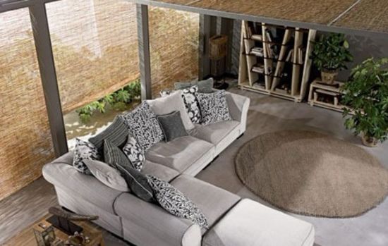 采用卷簾裝飾的隔窗將室內(nèi)與室外分割,高空間、大進(jìn)深的客廳在裝飾材料上以木材和竹制品居多,中式風(fēng)格的這種表現(xiàn)讓整個(gè)空間傳統(tǒng)中透著現(xiàn)代,現(xiàn)代中糅合了古典氣韻。