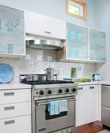 廚房里使用這類白色廚柜,可具有擴充視覺效果的作用。