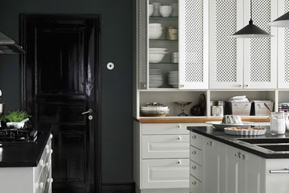 【白色櫥柜搭配黑色大理石臺面,廚房穩(wěn)重大氣又充滿神秘感?!?/h3>