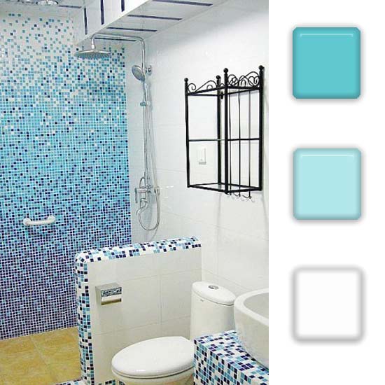 不論是深藍淺藍,統(tǒng)一的藍白色調(diào),看起來很是清新!衛(wèi)浴用這樣的色彩打造,感覺就像是在海邊。