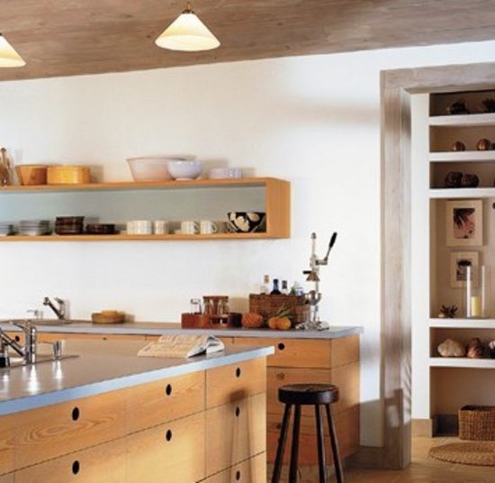 矩形的掛墻框架代替了大型廚柜,起到裝飾效果的同時(shí)也提供了一定的收納作用,雖然沒(méi)有廚柜的隱蔽性高,但正適合那些廚房用具不多的小家庭。