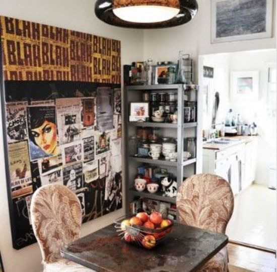 黑色和褐色為主的小餐廳給人一種莊重之感,而墻上隨意粘貼的簡報讓空間多了幾分活潑。