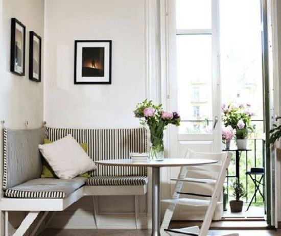 設(shè)計一個靠墻固定的餐椅是小戶型餐廳最好用的招數(shù)之一,不僅節(jié)省空間,而且把墻壁當做靠背的餐椅也非常舒適。餐椅選用了文藝青年最喜愛的黑條紋布藝進行裝飾,配合墻上寫意的裝飾畫,文藝小清新的餐廳感覺就出來了。
