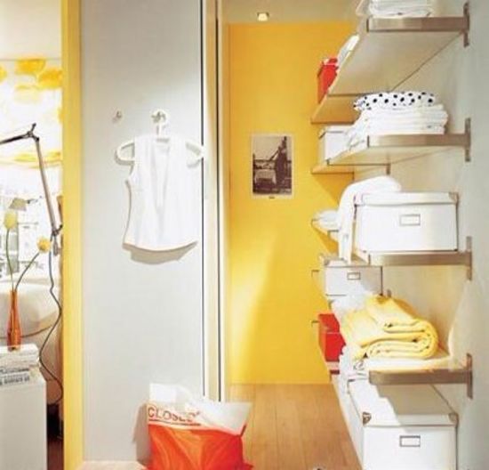 打破將床靠墻擺放的傳統(tǒng)思維模式,巧妙地在床頭一端設(shè)計(jì)出隔墻;隔墻作為床頭后的背景墻面,保證了休息區(qū)的完整性。隔墻后則被分隔出2米左右的空間,可以作為一個(gè)步入式衣櫥兼儲(chǔ)藏室。