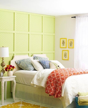 臥室中運(yùn)用綠色的背景墻面,搭配可愛(ài)的花形布藝,打造出富有視覺(jué)層次感的空間效果。恬淡的色彩和不易察覺(jué)的柔情如同我們?cè)绱簳r(shí)愉悅的心情,立刻為家增添一份情趣。