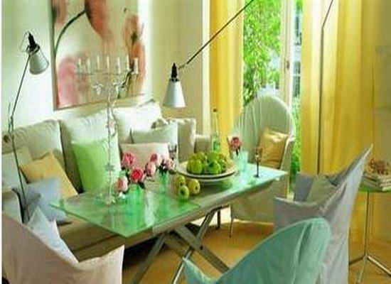 在整體空間面積不大的房子中,可以不專門開(kāi)辟就餐區(qū),將玻璃餐桌往“玻璃墻”邊一靠,通過(guò)鏡子的效果,讓整個(gè)空間得到了充分的利用和延展,同時(shí)有效地讓視覺(jué)空間得以放大。