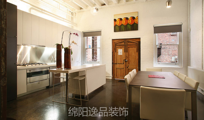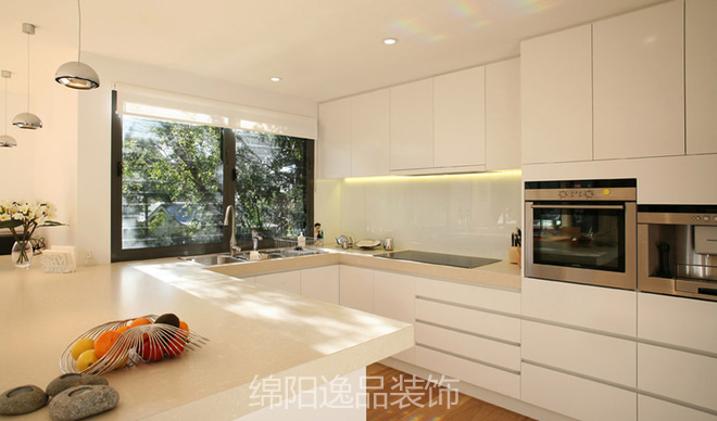 這套案例是來自綿陽逸品裝飾的設計師之手的一件簡約風格室內(nèi)設計。可以看到,室內(nèi)采用了白色主題背景色,地面采用深色地面。進入大門,你會深深地被整潔的廚房區(qū)所吸引。