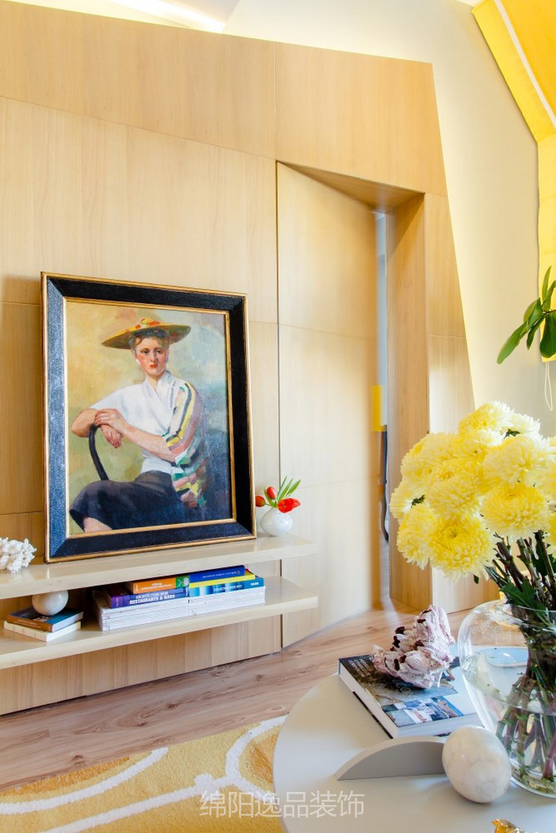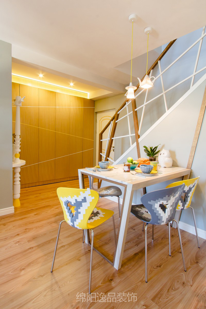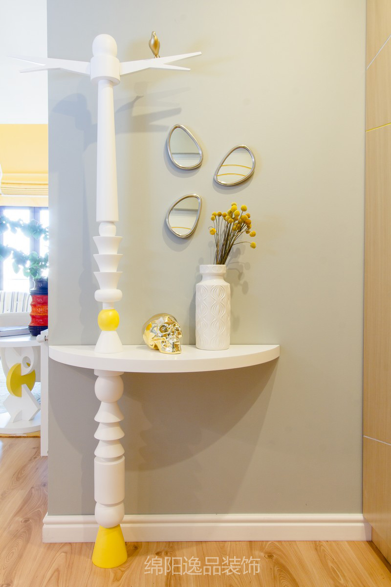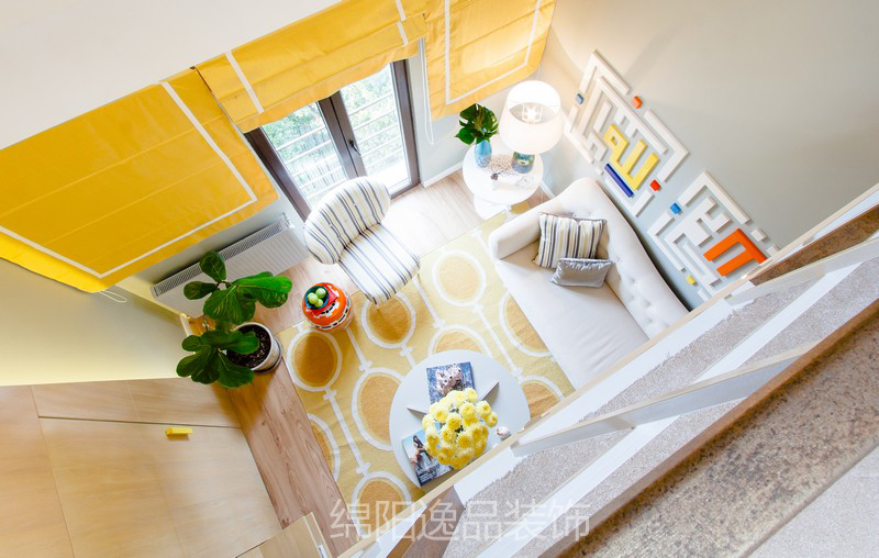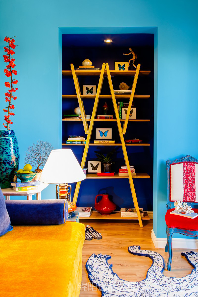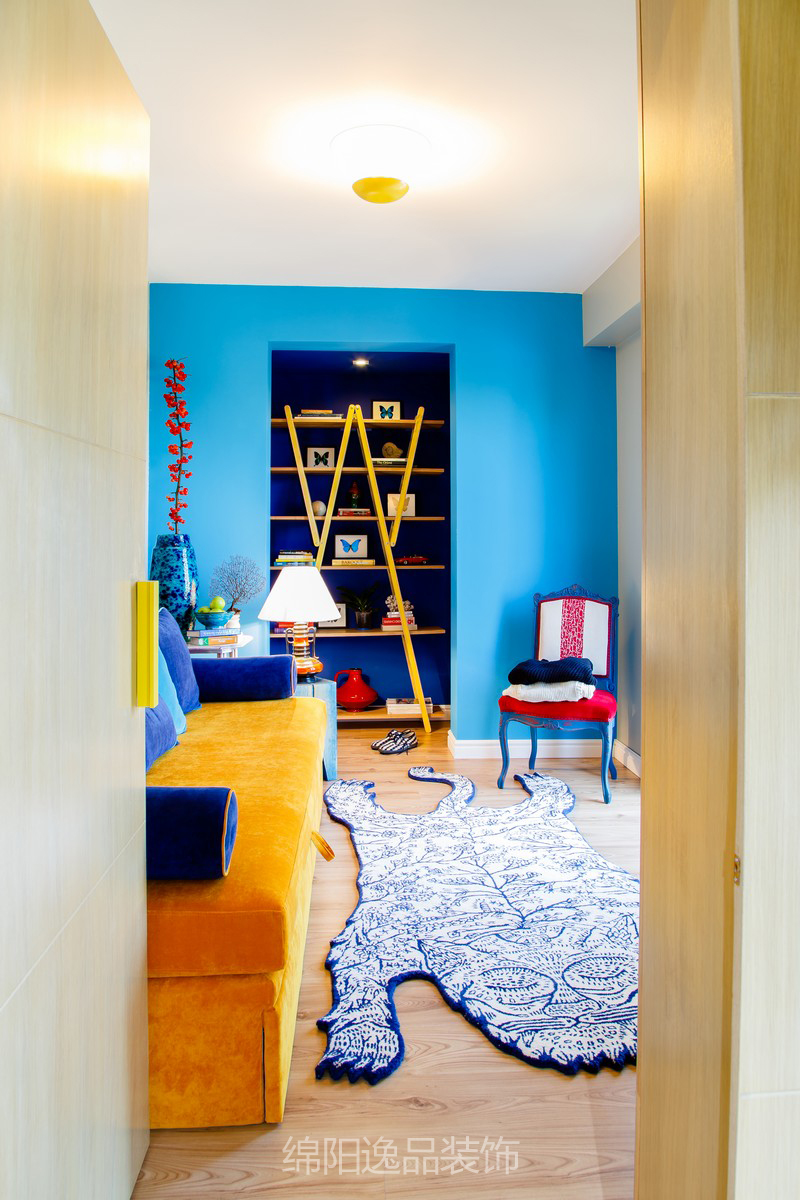 設(shè)計(jì)師把這次的設(shè)計(jì)比喻成一場(chǎng)刺激、大膽的冒險(xiǎn)游戲。灰色的墻面與木質(zhì)地板在陽(yáng)光的暈染下,顯得柔和又舒適,當(dāng)然這一切只是為了后期張揚(yáng)的色彩做鋪墊,柔軟的黃色地毯,搶眼的橙色儲(chǔ)物凳,藍(lán)色陶瓷花瓶,綿陽(yáng)逸品裝飾的設(shè)計(jì)師以及以阿拉伯語(yǔ)為靈感制成的幾何裝飾品,豐富的色彩以及配飾讓這里處處充滿了驚喜