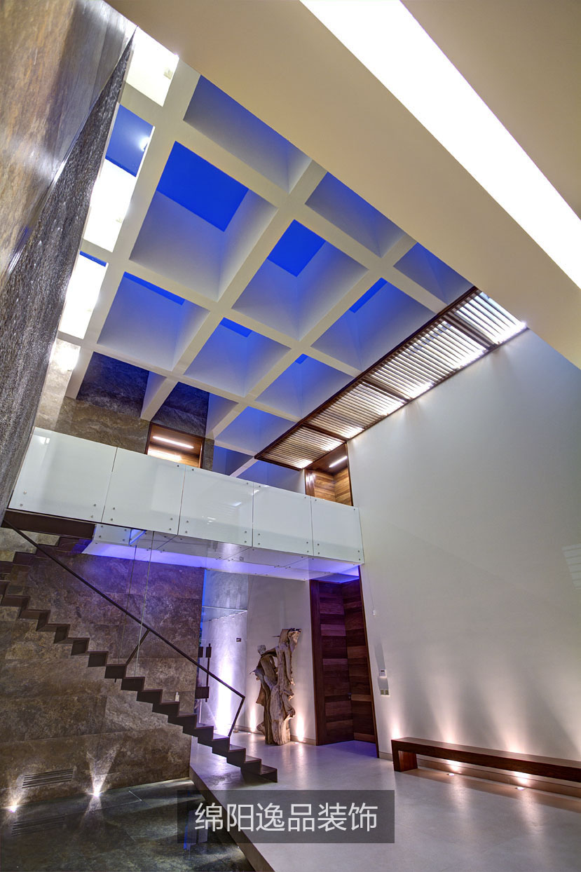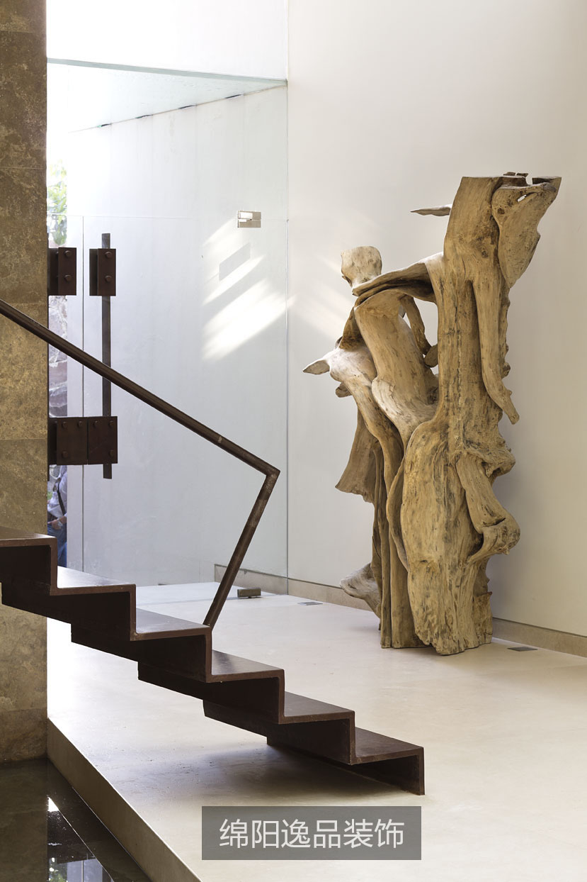 這所房子呈現(xiàn)出了大量簡(jiǎn)單的幾何圖形和簡(jiǎn)潔的線(xiàn)條。像畫(huà)廊通道和能看到白桃花心木林的露臺(tái)這樣的特殊區(qū)域包括了很多元